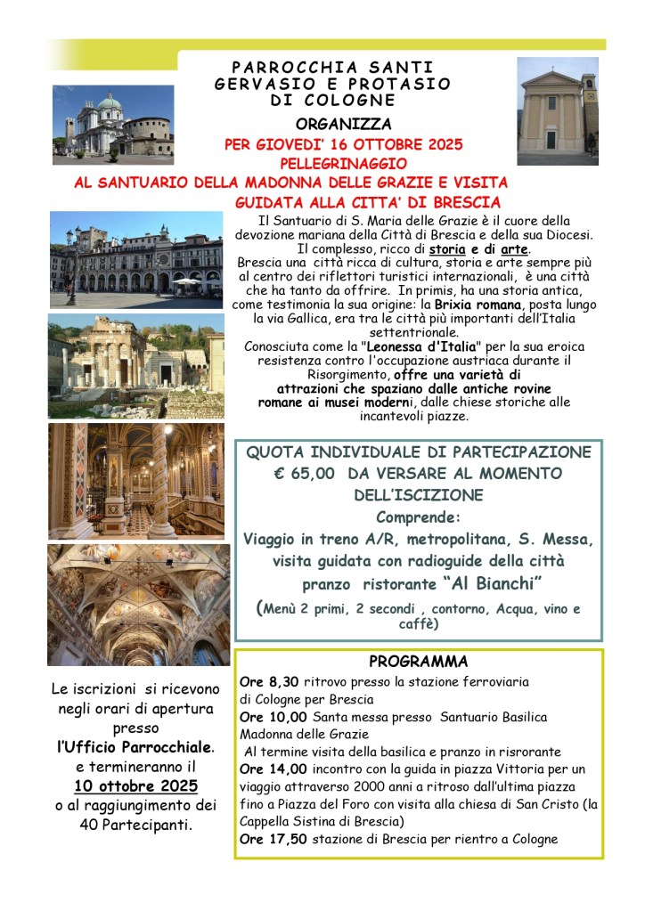 PELLEGRINAGGIO AL SANTUARIO DELLE GRAZIE DI BRESCIA