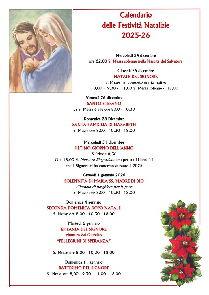 CALENDARIO CELEBRAZIONI NATALIZIE