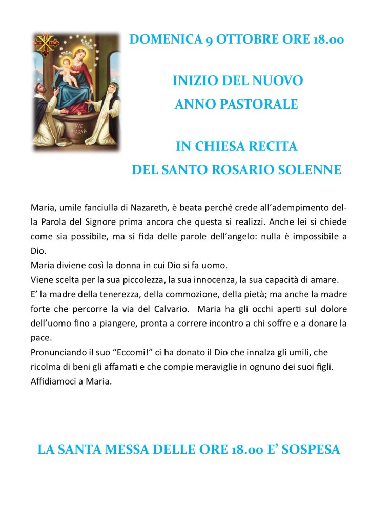 Che questo tempo di grazia sia per tutti noi una bellissima occasioneper preparare il Suo ritorno e per gioire, ancora una volta, della meraviglia del Natale, di un Bimbo, Dio, venuto a visitarci dall’alto.