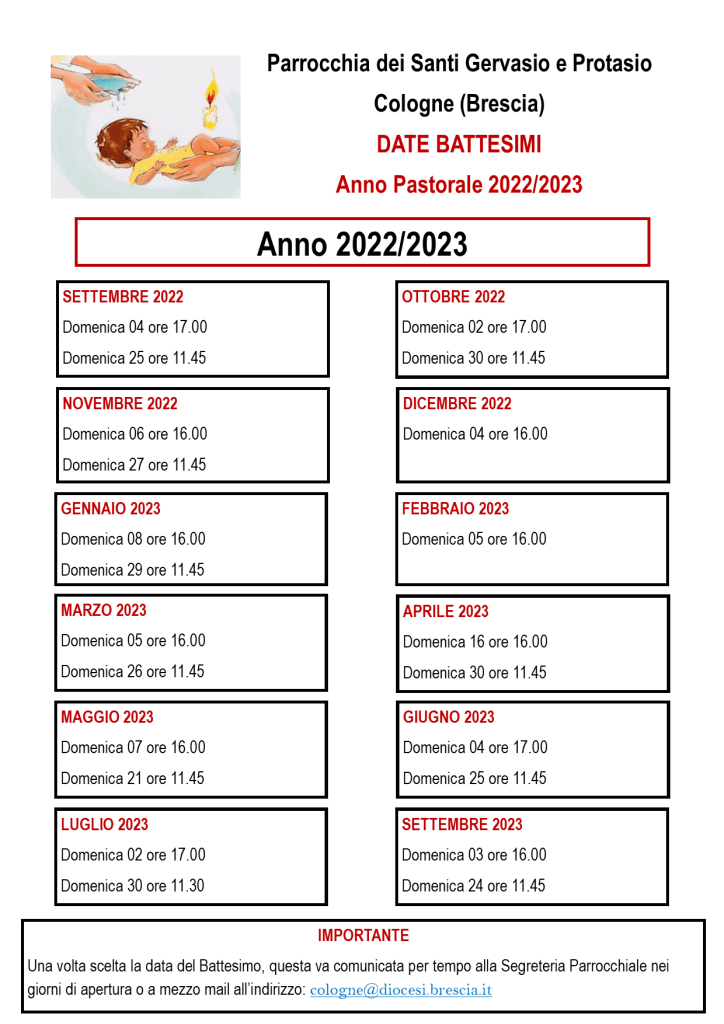 Le altre Sante Messe della giornata verranno celebrate secondo l’orario consueto alle 08:00, 09:30 e 18:00.
